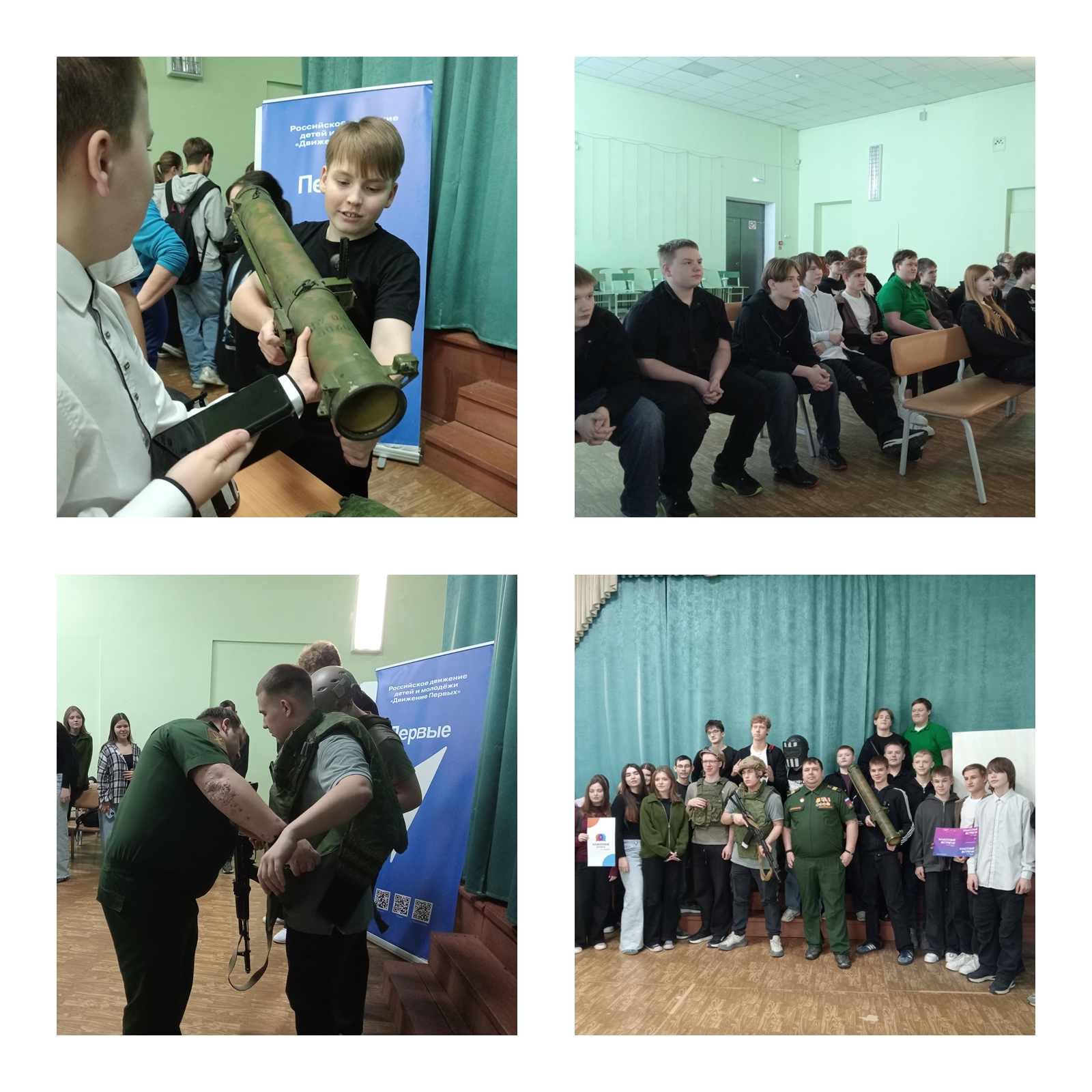 16.02.2026 г. и 19.02.2026 г. для учащихся 5-х, 8-го, 9-го и 11-го классов СОШ № 1 прошли встречи с участником специальной военной операции, лектором по патриотическому воспитанию, жителем города Н. Бабуриным. Целью мероприятий было знакомство ребят со службой в рядах Российской Армии во время боевых действий посредством рассказа и показом фотографий с мест боев. Учащиеся расширили свой кругозор, задавая вопросы, узнали о сложностях армейской жизни во время военных действий, получили возможность примерить на себя армейскую амуницию (каски и бронежилеты), а также попробовать свои силы в обращении с оружием - разобрать и собрать автомат Калашникова. Мероприятие было подготовлено библиотекой № 3 и СОШ № 1. Во встрече приняли участие 93 школьника.